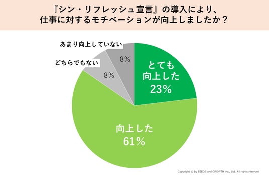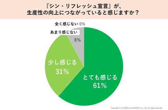新卒採用に特化したコンサルティング会社のシーズアンドグロース株式会社(本社所在地:東京都中央区、代表取締役:河本 英之、以下「SAG」)は、2024年12月より運用を開始した福利厚生制度『シン・リフレッシュ宣言』に関する社内アンケートを実施しました。