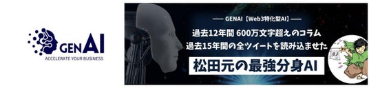 ・また、当社の松田次期代表の過去12年間で発信した600万字超のコラムと15年間の全ツイートを学習し、膨大な知識を詰め込んだ松田元(@gencryptian)の分身として誕生したWeb3特化型の「GENAI」が番組の脚本を手掛ける!?また番組のどこかに登場するかも!?お楽しみに~♪