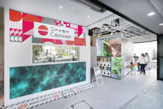 店内1階壁面に設置された3m×1mの大型デジタルサイネージには新進気鋭のアーティストらによって創造された「カプセルトイ=ドリームカプセル」というテーマにインスパイアされた映像の数々を放映。カプセルトイを媒介とした“日常と非日常が交差する文化体験”を提供しています。