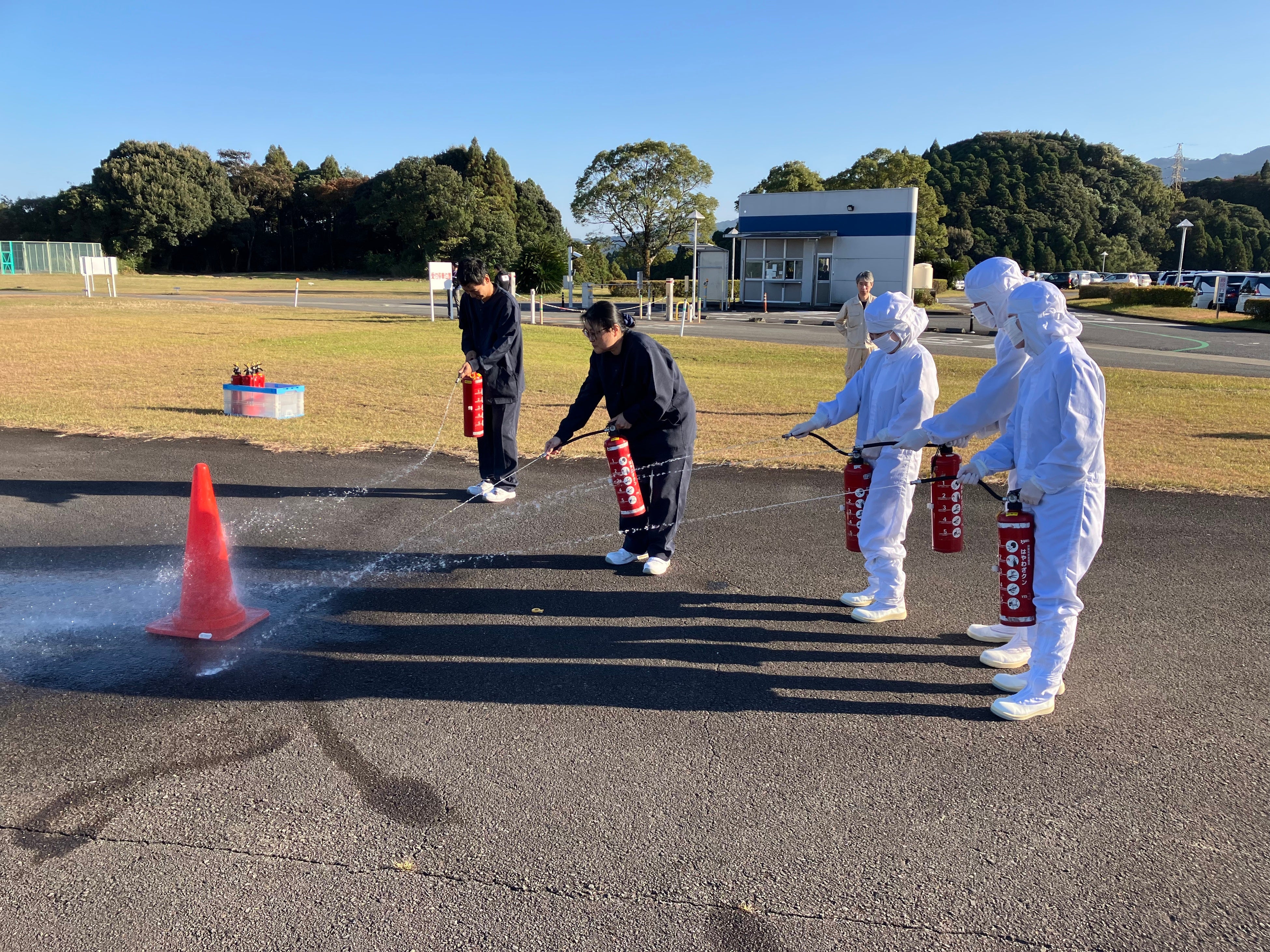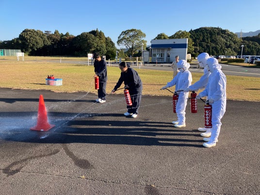 火災を想定した避難訓練では、新入社員が実際に消火器を使用した訓練を行い、災害時の対応力に磨きをかけました。避難訓練後には、社員が協力して工場周辺の清掃活動を実施し、軽トラック1台分のゴミを回収。この清掃活動は、4年前に社員の提案から始まったもので、地域への感謝を形にする取り組みとして今後も恒例行事として続けていく予定です。