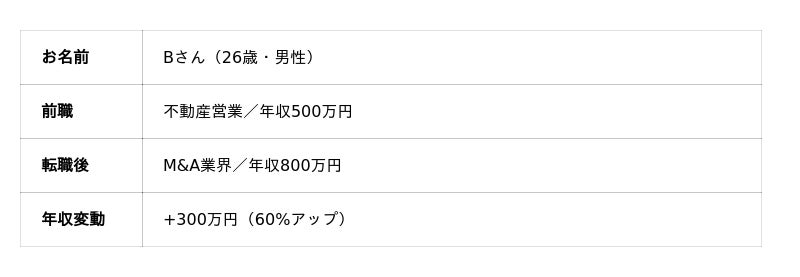 事例2:不動産営業 → M&A業界|年収300万円アップ