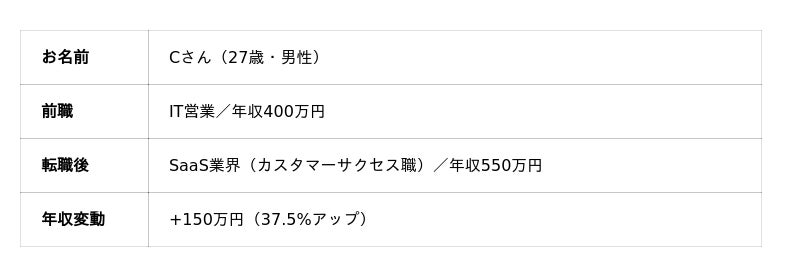 事例3:IT営業 → SaaS業界(カスタマーサクセス)|年収150万円アップ