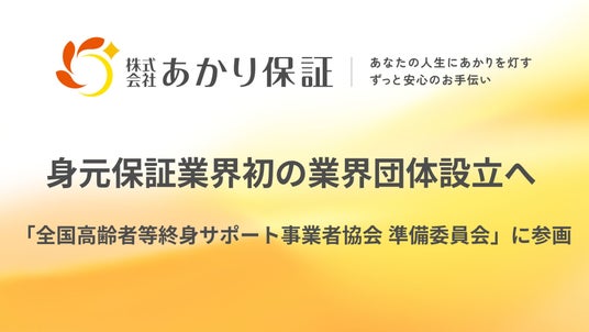 弁護士・司法書士・ケアマネジャーなどの専門家が連携し、身元保証サービスを提供する株式会社あかり保証(本社:大阪府大阪市北区、代表取締役:清水勇希、以下「あかり保証」)は、2025年2月1日に設立された「全国高齢者等終身サポート事業者協会 準備委員会」(以下「準備委員会」)に参画したことをお知らせいたします。