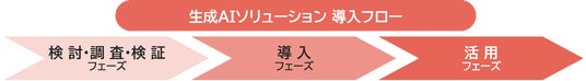 - 導入フェーズ3)生成AIの社内導入支援・環境構築:社内導入のご支援、最適な環境構築・セキュリティ面も 含めてサポート