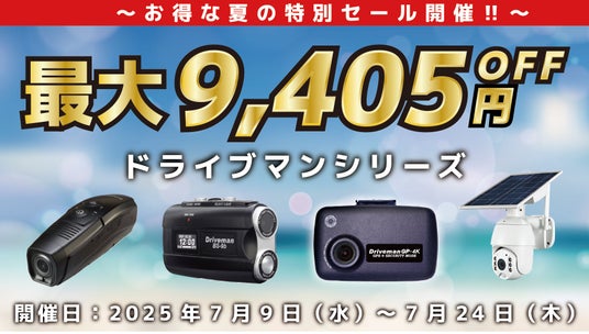 アサヒリサーチ株式会社(所在地:東京都品川区)は、全国の警察車両にも採用されている高性能ドライブレコーダーブランド「ドライブマンシリーズ」において2025年7月9日(水)から7月24日(木)までの期間限定で、最大9,405円OFFとなる夏の特別セールを開催いたします。