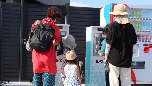 会場内に設置した給水スポットは、「熱中症予防」として給水していただくだけでなく、来場者・運営スタッフの皆様のマイボトルなどでの給水体験が「プラスチックごみ削減」や「CO2削減」にも繋がっており、気候変動・温暖化対策を誰もが実施できるサステナブルアクションとなっております。7月22日(火)時点の給水回数をもとにしたCO2削減量は457,608kgとなっております。