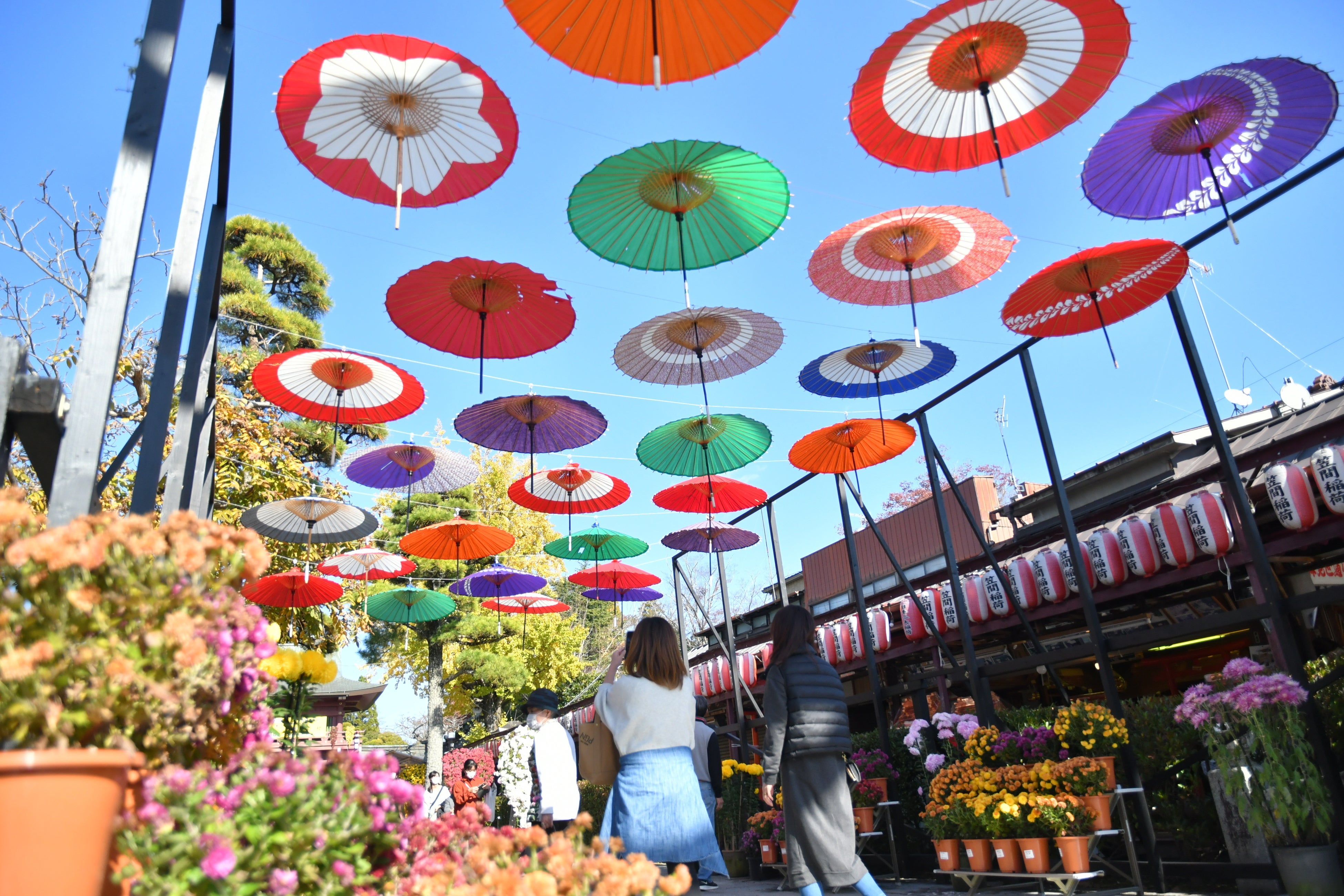 門前通りの装飾、菊花手水、和傘のアート演出など、映える撮影ポイントを多数ご用意。