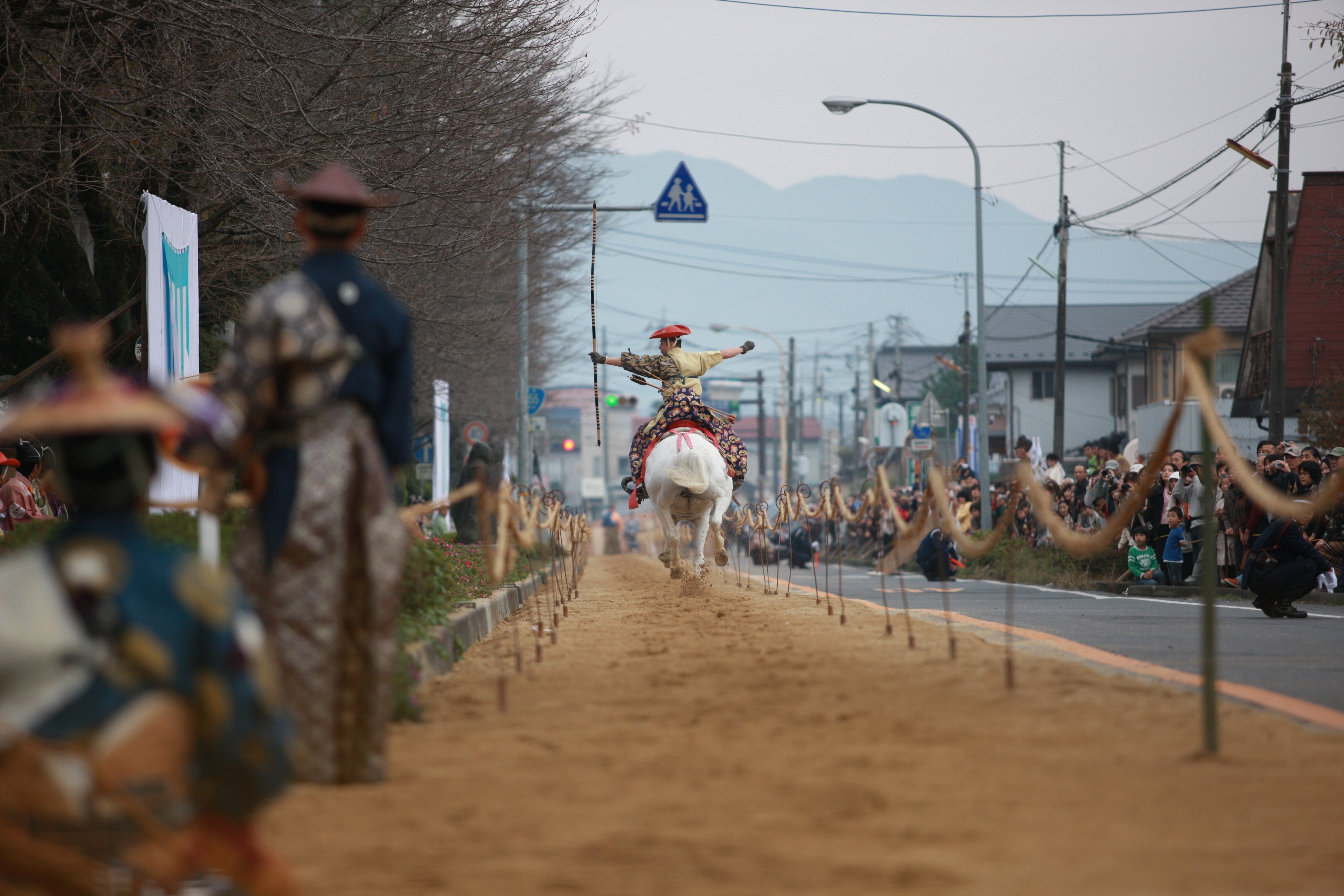 11月3日(月・祝)には、馬上から矢を放って的を射る勇壮な神事を行います。的の割れ方により、来年の豊凶を占います。