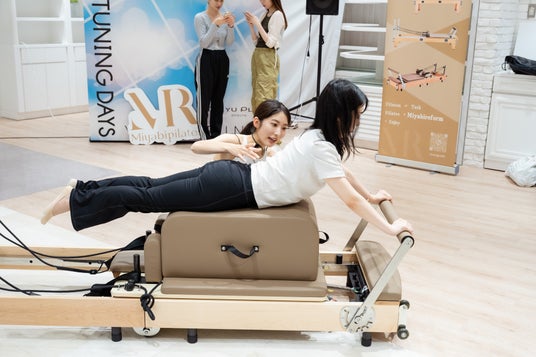本イベントでは、ブランド特製の折りたたみ式ヨガマットを提供し、軽量で持ち運びしやすい機能性が高く評価されました。 また、本格的なマシンピラティスを体験できるブースも展開し、Miyabiの折りたたみ式リフォーマーを使用したデモンストレーションが来場者の注目を集めました。
