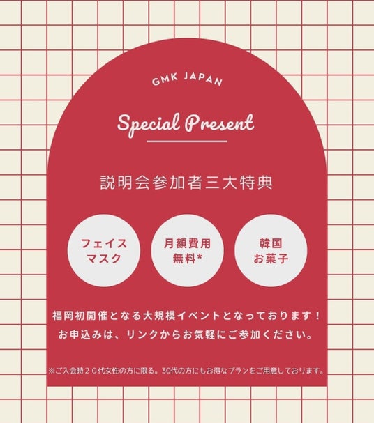 説明会にご参加いただいたすべての方へ、韓国グッズ(パックやお菓子など) をプレゼント。