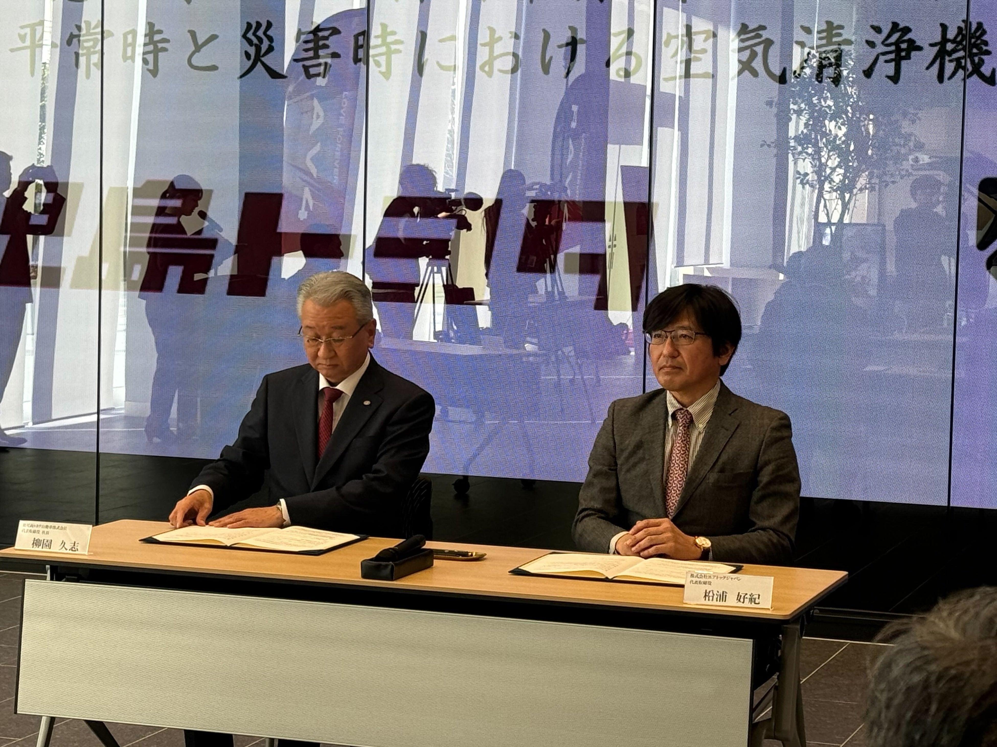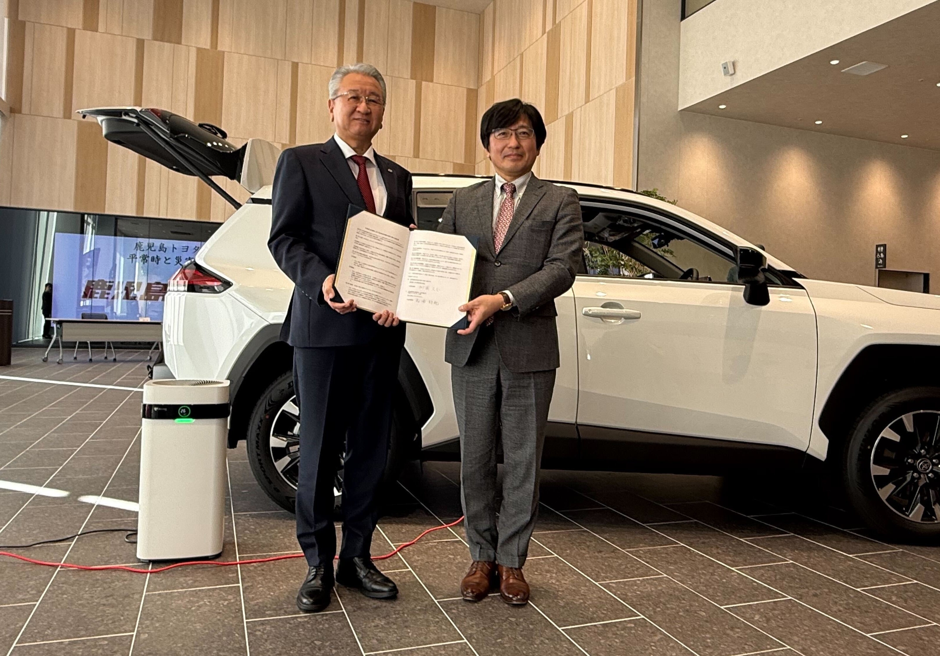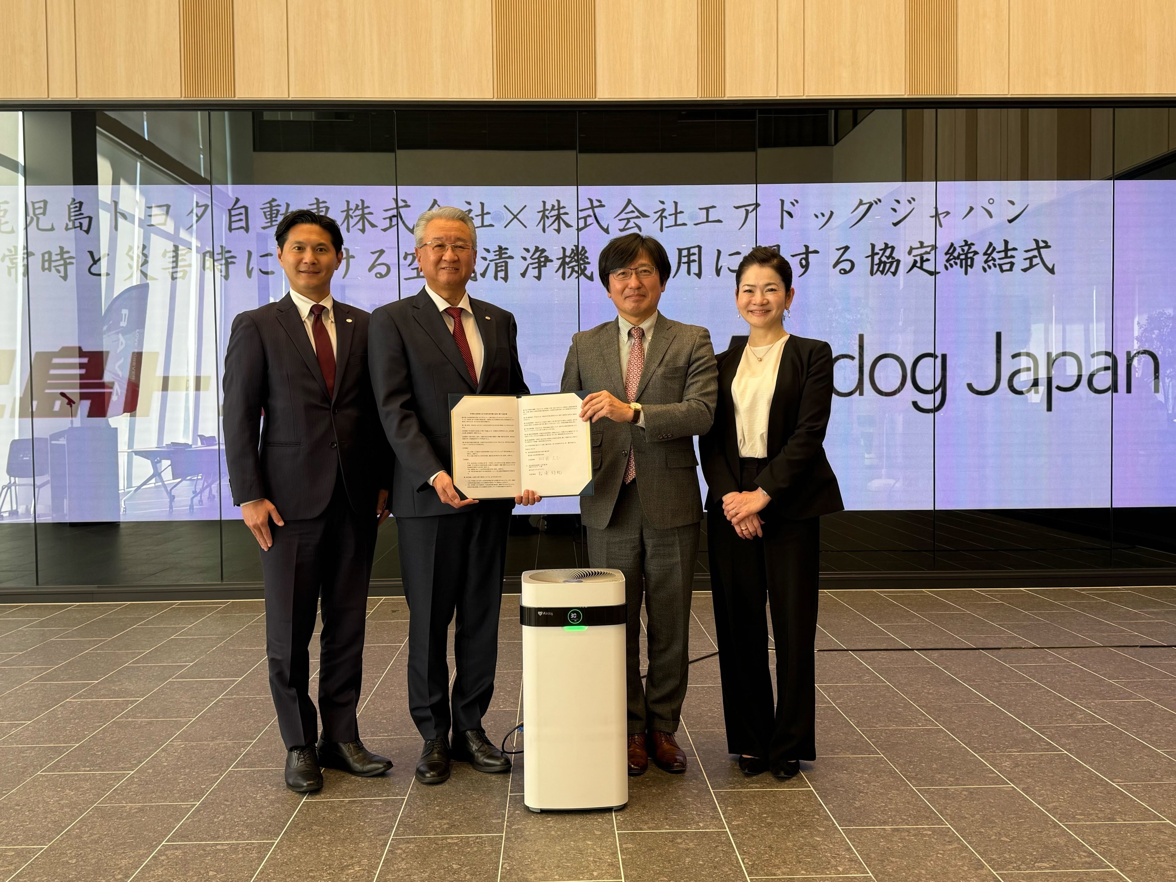 株式会社エアドッグジャパン(本社:東京都港区、代表取締役:柗浦好紀、北村重光、以下「エアドッグジャパン」)は、⿅児島トヨタ自動車株式会社(本社︓⿅児島県⿅児島市、代表取締役社長︓柳園久志、以下「鹿児島トヨタ」)と、平常時における店舗の環境改善と、災害時における良好な避難所環境の提供支援により「災害関連死」の防止を図る事を目的とした「平常時と災害時における空気清浄機の活用に関する協定」を1月20日に締結したことをお知らせいたします。