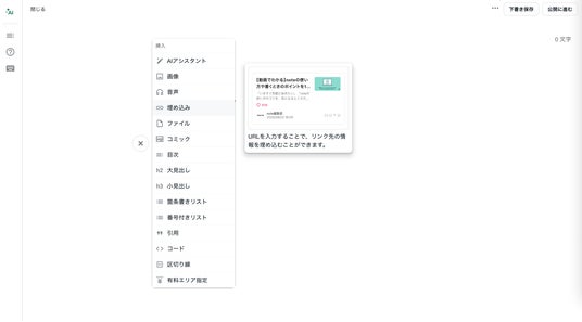 記事編集画面から埋め込みを選択