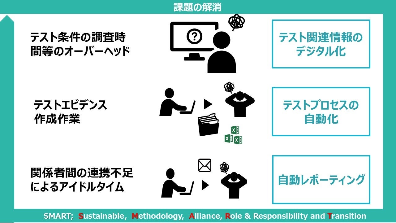 テスト関連情報のデジタル化xテストプロセス自動化X自動レポーティングで三大課題解消