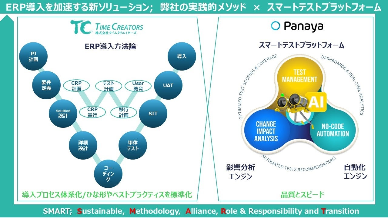 この課題を解決するため、弊社の実践的ERP導入方法論とPanaya社のスマートテストプラットフォームを融合した仕組みをご提案します。効率的なテスト設計及びダッシュボードにより迅速な意思決定が可能となり、プロジェクトの品質とスピードを飛躍的に向上させます。