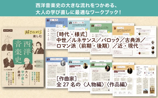 株式会社くもん出版(代表取締役社長 泉田 義則)は、シリーズ累計23万部を突破した人気の「解きながら」シリーズから、『解きながら楽しむ 大人の西洋音楽史』、『解きながら身につける 大人の文章力』の2点を同時刊行いたしました。