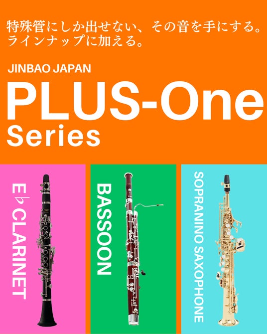 JINBAO JAPAN Plus-One SeriesE♭クラリネット・バズーン・ソプラニーノサクソフォン等の特殊管楽器を手に取りやすい価格帯で【PLUS‐One】と冠してシリーズ展開。