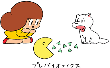 フラクトオリゴ糖などのプレバイオティクスは、腸内の善玉菌のエサ(栄養源) になります。