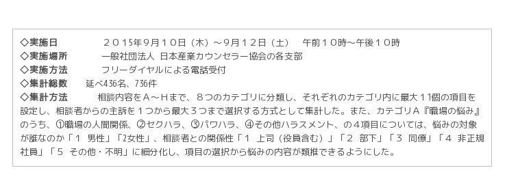 【2015年度「働く人の電話相談室」 実施概要】