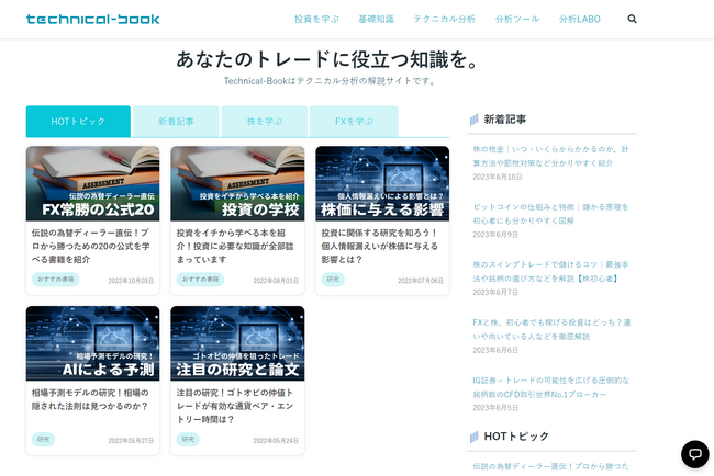 「テクニカルブック」は、FXトレーダー向けにテクニカル分析に関する情報や知識を提供する専門サイトです。初心者から上級者まで幅広い層のトレーダーが、自分に合ったテクニカル分析の手法や知識を学ぶことができるプラットフォームを目指しています。