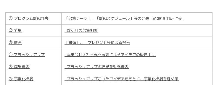 本プログラムでは、「地域活性化」や「地域課題解決」等を切り口に、日本全国・海外の法人・団体・個人から、3社の経営資源を活用した協業アイデアを募り、応募アイデアの中から複数の有望なアイデアを選定したうえで、3社が連携して事業化に向けたブラッシュアップを行っていきます。