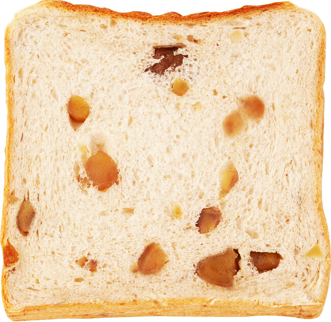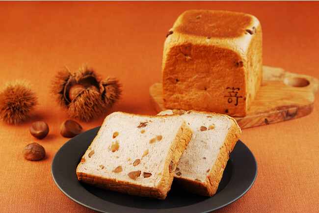 マロンクリームに焼き甘栗、シロップ漬けなど3種類のマロンを生地にあわせることで、どこを食べても栗の美味しさをお楽しみ いただける、贅沢スイーツ食パンです。