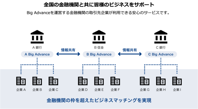 中小企業向け経営支援プラットフォームBig Advanceは、Big Advanceを運営する金融機関の取引先企業が利用できるWEBサービスです。