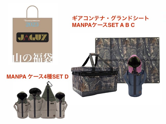 【JAGUY 山の福袋2023】MANPAとお出かけ!!セットは、ギアコンテナ、MANPAのケース、防水グランドシートがついたお得な福袋