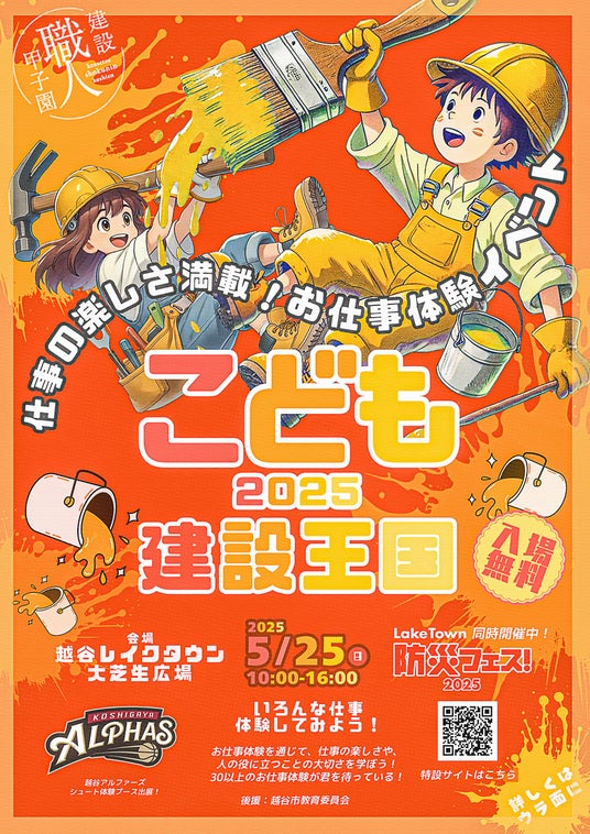 「建設業界から日本を元気にする」をビジョンに掲げ、活動をする「一般社団法人建設職人甲子園」主催の職業体験型イベント「こども建設王国2025 in 越谷」開催のお知らせです。