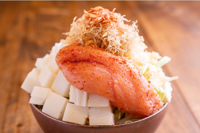 本場韓国産白菜キムチの旨味と乳酸菌を生きたまま閉じ込めた“冬眠キムチ”と岩手県産銘柄豚・岩中豚を合わせたもんじゃ。ほどよい辛さと酸味を感じる“冬眠キムチ”を岩中豚のまろやかな旨味が包み込み、相性は抜群。最後まで飽きることなくお召し上がりいただけます。
