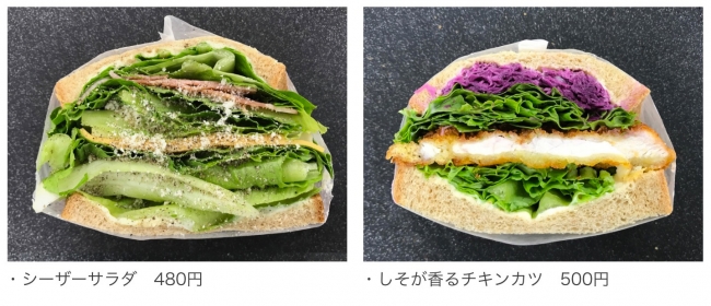 全粒粉のパンに、目前に広がる公園のさわやかさをイメージしたお野菜をたっぷり挟み込みました。