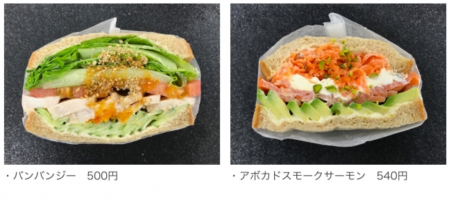 サンドイッチの定番具材卵や人気のアボカド、そしてバンバンジーなどの変化球まで様々な具材をお野菜と共にお召し上がりください。