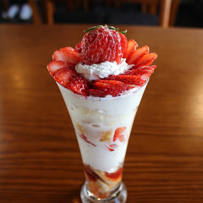「まりひめ」をより一層美味しく召し上がっていただけるよう、当店のパンケーキやパフェは生地や生クリームの甘味を抑えるよう工夫しており、「まりひめ」との相性もピッタリです。