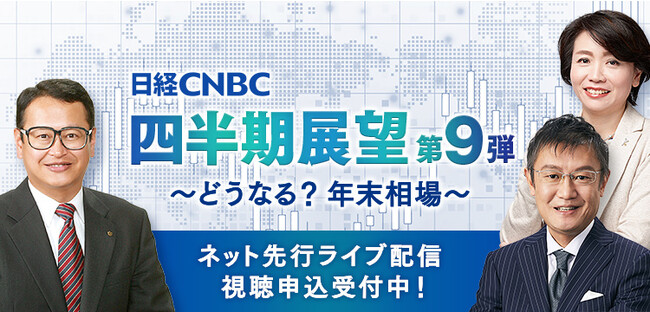 10月6日(木)は日経CNBCが四半期に一度マーケットの先行きを討論する「四半期展望第9弾 ~どうなる?年末相場~」を放送。番組はインターネット上で9月30日(金)にライブ配信します。