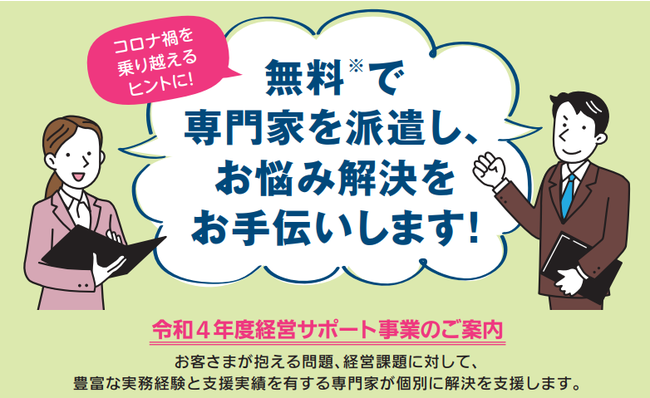 当社は、大阪信用保証協会が保証付融資を利用中の中小企業者に対して、経営改善指導を行う専門家派遣事業の委託先として、2016 年5月に業務委託契約を締結しました。締結後の取扱件数は年々増加しており、2022 年度の専門家派遣事業では、約 200 社の経営診断 業務や経営改善計画策定支援を行っております。