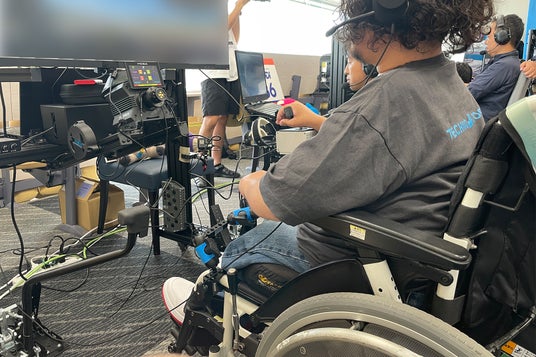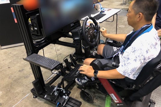 ペダル型、ハンドル型コントローラーが使用できなくてもeモータースポーツを楽しめるレーシングシミュレーターを開発しました。実証実験では、ご来場いただいた車いすユーザーの方々にシミュレーターを体験いただき、操作方法に関するニーズを調査しました。