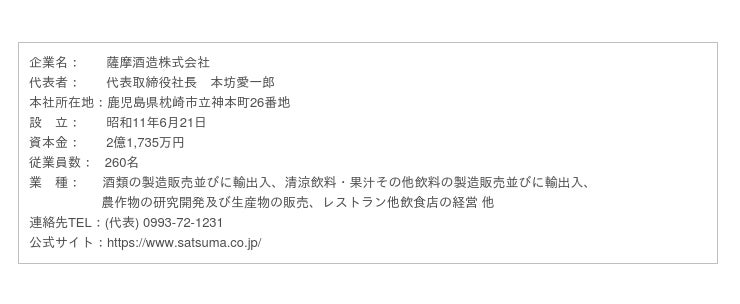 <薩摩酒造について>