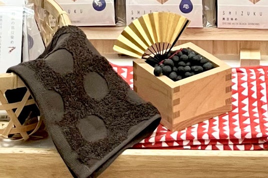 丹波篠山の黒大豆への思いと、それぞれの産地の恵みから出来た泉州タオル 兵庫県丹波篠山の黒豆加工品製造業者と特産野菜で染める泉州タオルメーカーとのコラボレーション製品