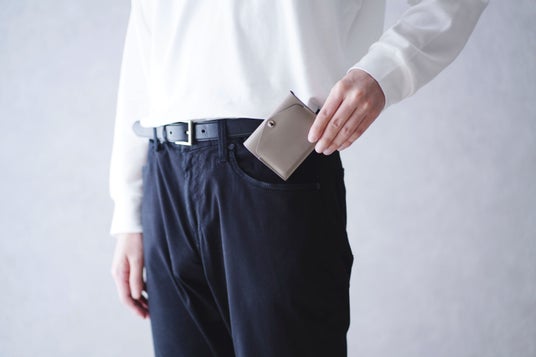 ■自然な手の動きで直感的に使える二つ折り財布。手に持ったりポケットに入れた時になじむサイズと感触
