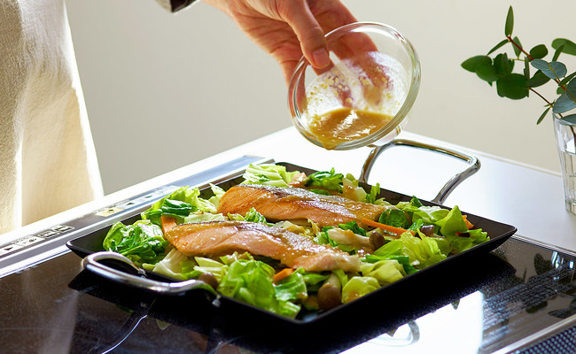 十分に蓄えた熱をじっくり食材に伝えることで、外はカリッ、中はふっくら食感に。