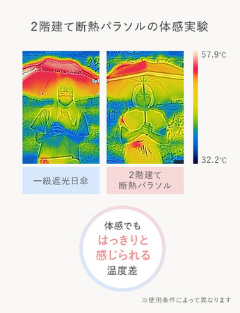 「エスタ 2階建て断熱パラソル」は、累計売上2万本を突破した「エスタ 断熱パラソル」がさらにパワーアップした新商品です。