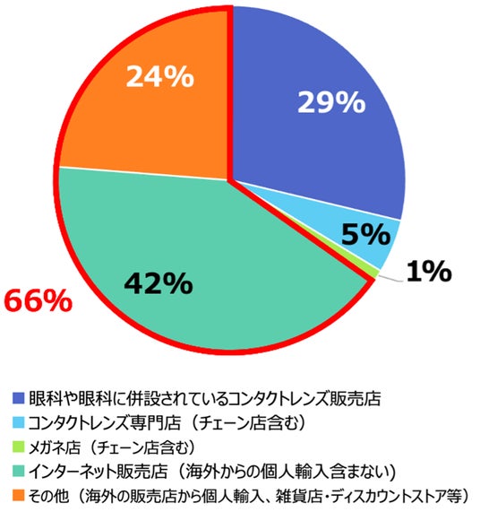 昨今、インターネット販売店や雑貨店・ディスカウントストアなどの非対面販売チャネルでもCLが購入できるようになり、多くのユーザー(特にカラーCLユーザー)が利用しています(非対面販売チャネル:インターネット販売店42%、その他24% 合計66%)(図4)。
