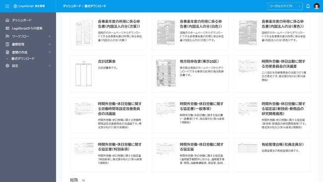 今後、LegalScript会社管理では、さらなるワークフローテンプレート・書式の拡充に加え、書類の自動作成機能・行政への電子申請サポートや補助金・助成金の申請アシスト機能等ユーザー様のバックオフィスの効率化を支援する機能を開発・強化してまいります。