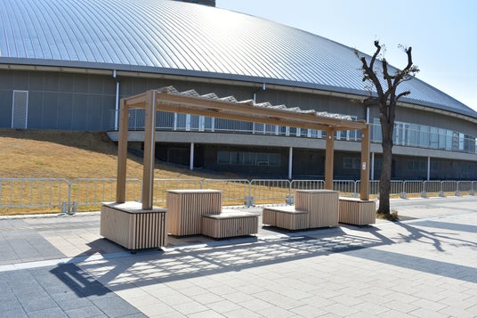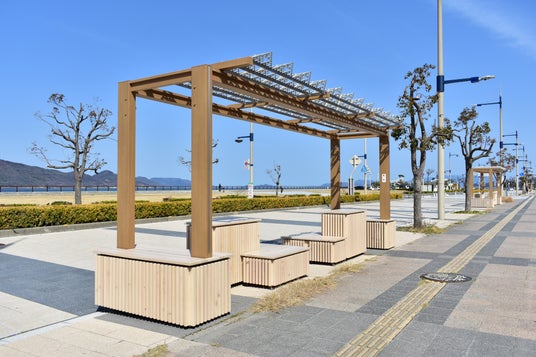 また、部材には香川県産ヒノキを使用しており、地域資源を活かした温かみのある空間づくりに配慮しています。日常の憩いの場としてはもちろん、イベント時の滞留・交流スペースとしての利用も想定しています。