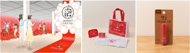 大好評の赤箱デザインのオリジナルグッズに新商品が登場します。赤箱と同じ保湿成分が入ったリップクリームや赤箱の香りが楽しめるディフューザーといった生活を楽しくしてくれるようなアイテムに加え、赤箱ファンの声をもとに制作されたスパバッグも発売。「赤箱 AWA-YA in YOKOHAMA」の会場に加え、AWA-YAオンラインストア(10月中旬頃開催予定)でも数量限定販売致します。