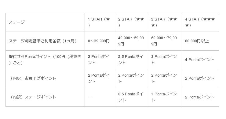 ローソンPontaプラスでのショッピングご利用金額(1ヵ月)に応じて、お客さまのステージ判定を行います。判定後のステージは翌月分に適用となります。