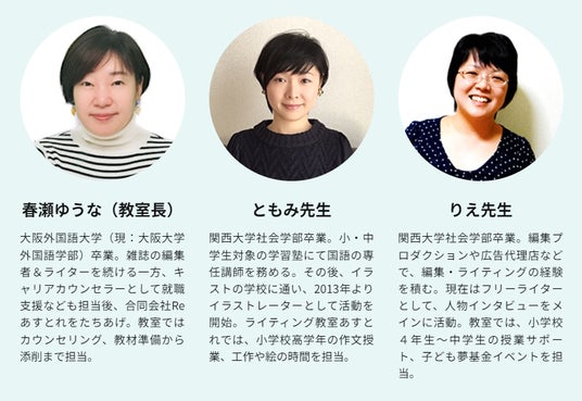 当教室は、コミュニケーションの基本を育んでもらえたらと、以下のスタッフを中心にさまざまなプロが関わり、運営を続けて6年目になります。