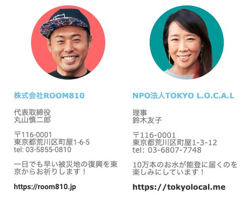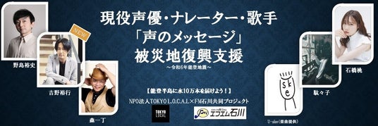 TOKYO L.O.C.A.L理事でありナレーターの森一丁を中心に、声優の石橋桃、野島裕史、吉野裕行、音楽ゲームを中心に活動するボーカリストの駄々子、サウンドクリエイターのU-skeなどと「現役声優・ナレーターが送る『特別なオリジナルメッセージ』を復興の一助に」という趣旨でクラウドファンディングを展開中。参加者に、人気声優やナレーターからのパーソナライズされたメッセージを購入いただき、その費用を水購入費用としてご支援いただくという形を取っています。