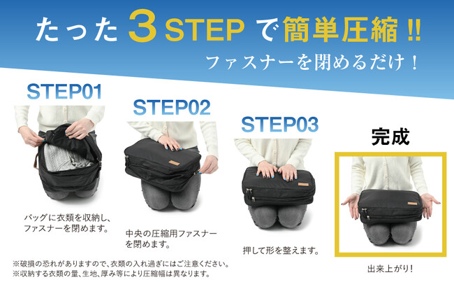 圧縮用ファスナーを閉めるだけで簡単圧縮!