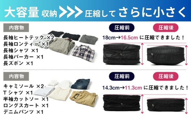 大容量収納を実現! からの、圧縮してコンパクトに!