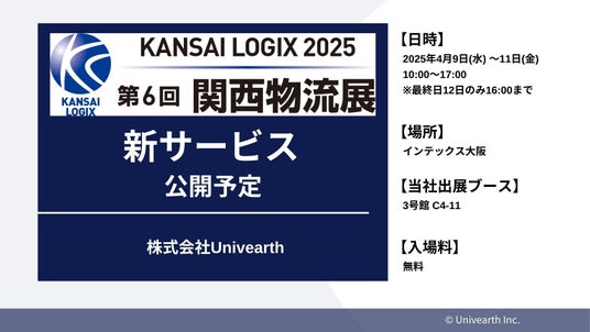物流DXプラットフォーム『LIFTI』を運営する株式会社Univearth(本社:大阪府大阪市北区、代表取締役:谷口 臨太朗)は、2025年にインテックス大阪で開催される「第6回 関西物流展(KANSAI LOGIX 2025)」に出展いたします。